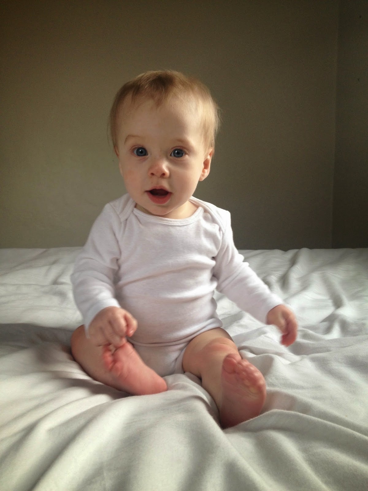 Logey, what a cute boy. I see that he curls his toes under like Ella does....and she's 3. Haha. Crawling is fun. That's when they really start changing.